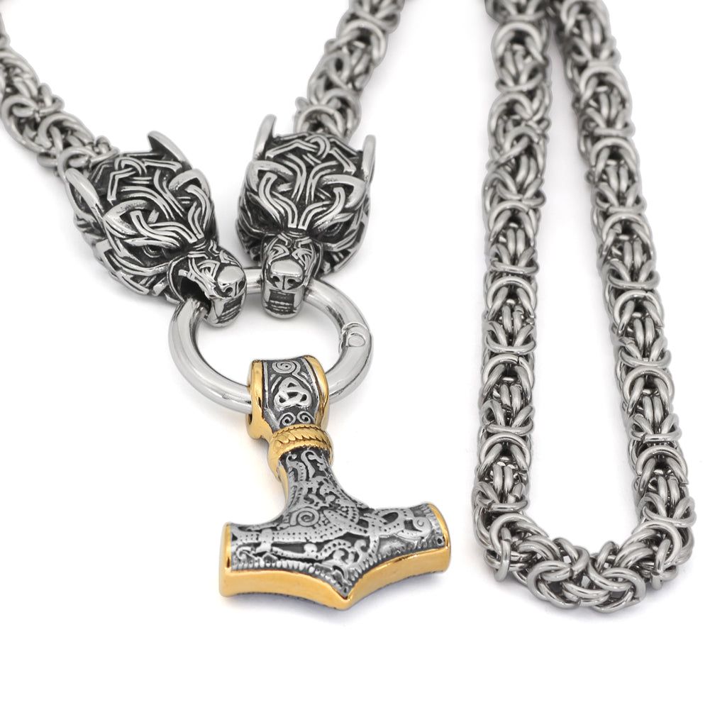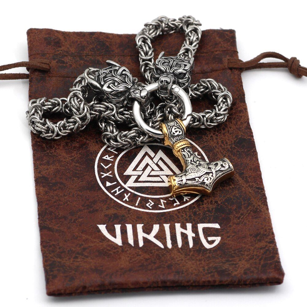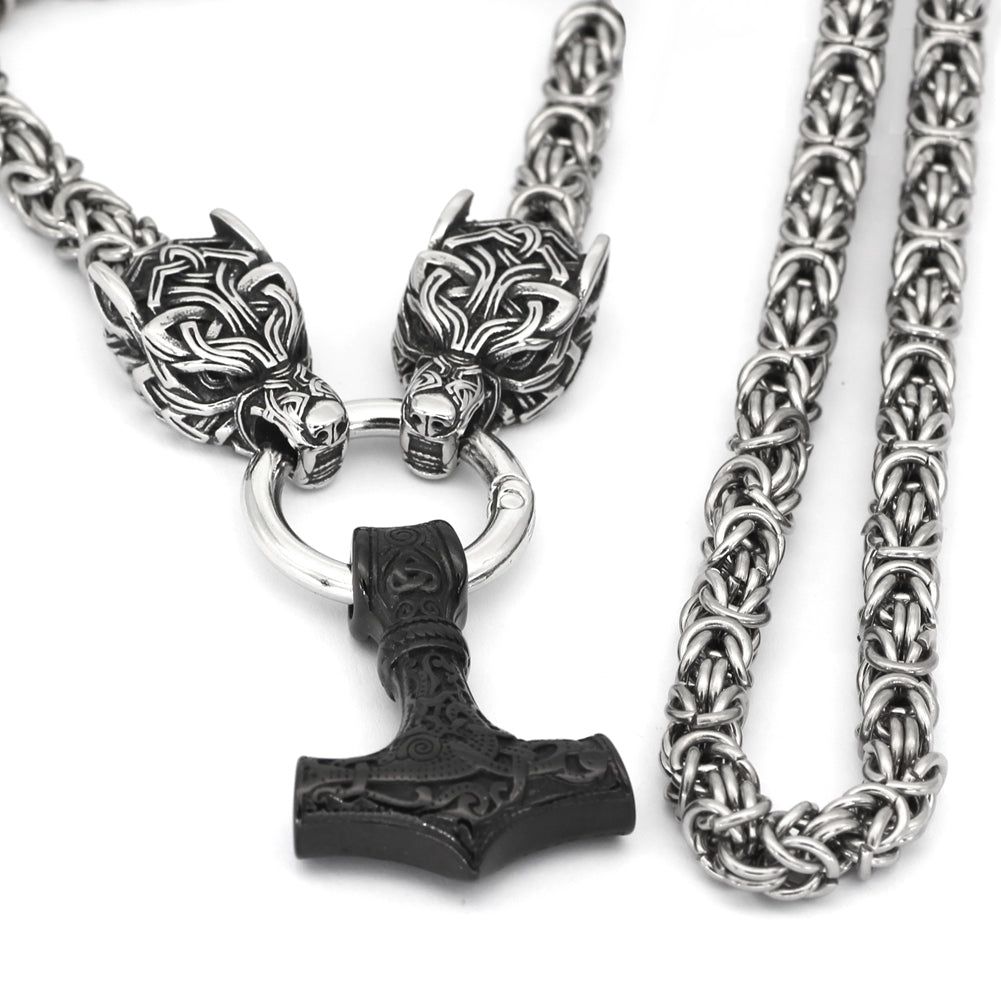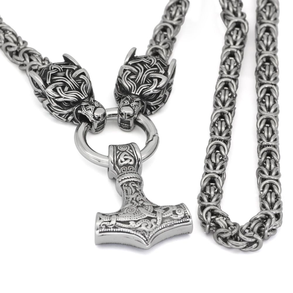 Le Collier Viking Marteau De Thor Et Têtes De Loups En Acier Inoxydable de vos rêves