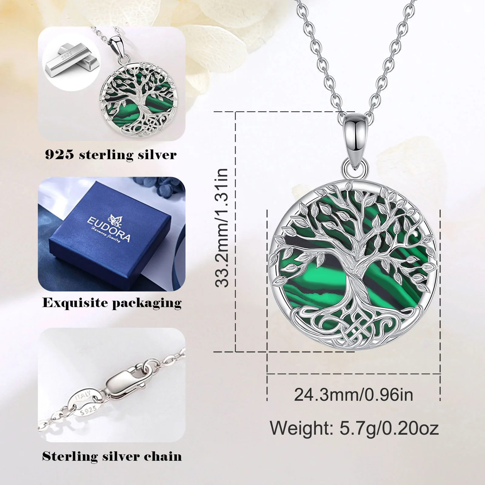 Taille du pendentif : 33,2 mm x 24,3 mm